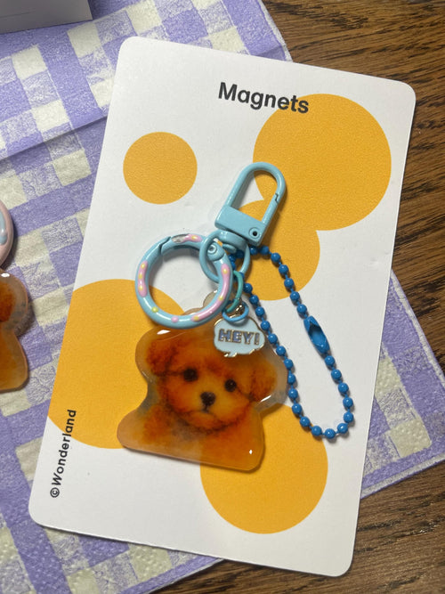 Adorable pet puffy dog acrylic Key chain Key ring / Bag charms Pink or Blue